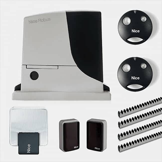 Kit İçeriği: Nice Rox 600 motor, 2 adet kumanda, emniyet fotoseli, flaşör, 4 metre kremayer dişli, bağlantı aparatları.